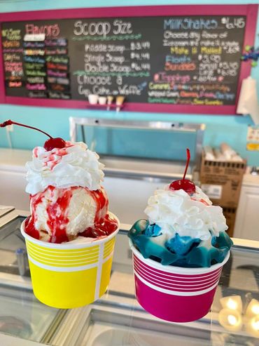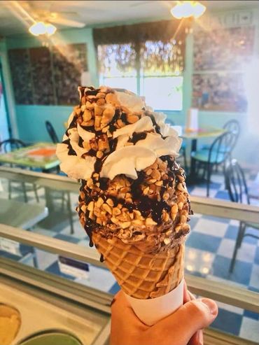We serve hand dipped ice cream, sundaes, milkshakes, and cones with all the favorite toppings!